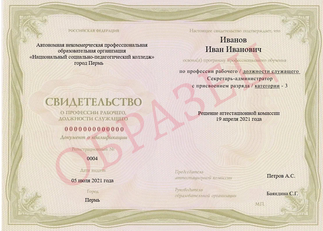 Получить еще больше навыков для работы секретарем можно в Национальном социально-педагогическом колледже (НСПК) по программе«Документационное обеспечение управления и архивоведение + Секретарь-администратор, помощник руководителя». Студенты получают среднее профессиональное образование (СПО), а на последнем курсе бесплатно проходят профессиональную переподготовку. Вы изучите: