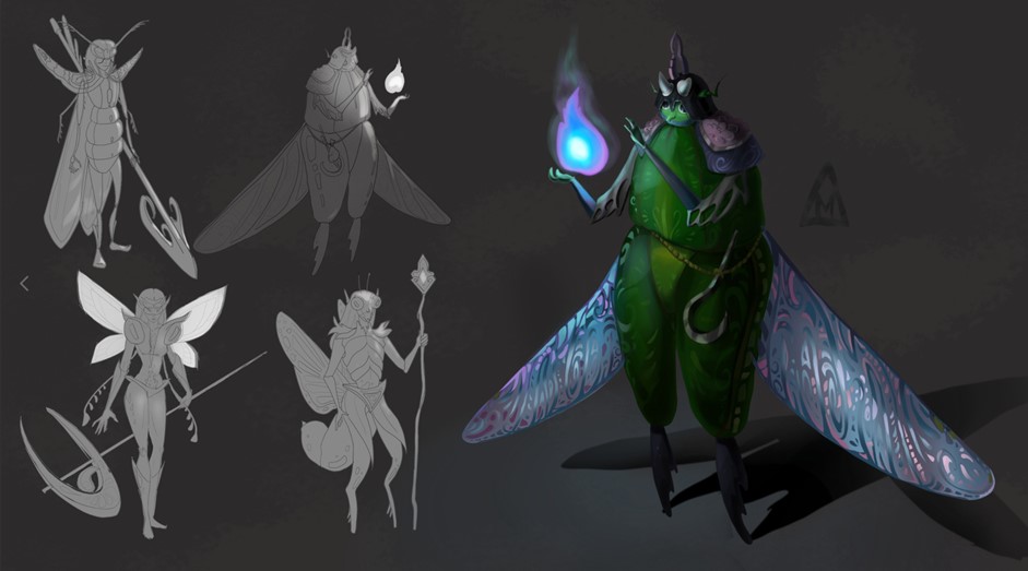 | Рис.6. Пример демонстративного материала. Копия концепт-арт персонажа. Автор: Дьяконова Мария Сергеевна | Рис. 7. Пример демонстративного материала. Разработка эскизов и концепции. Автор: Дьяконова Мария Сергеевна |