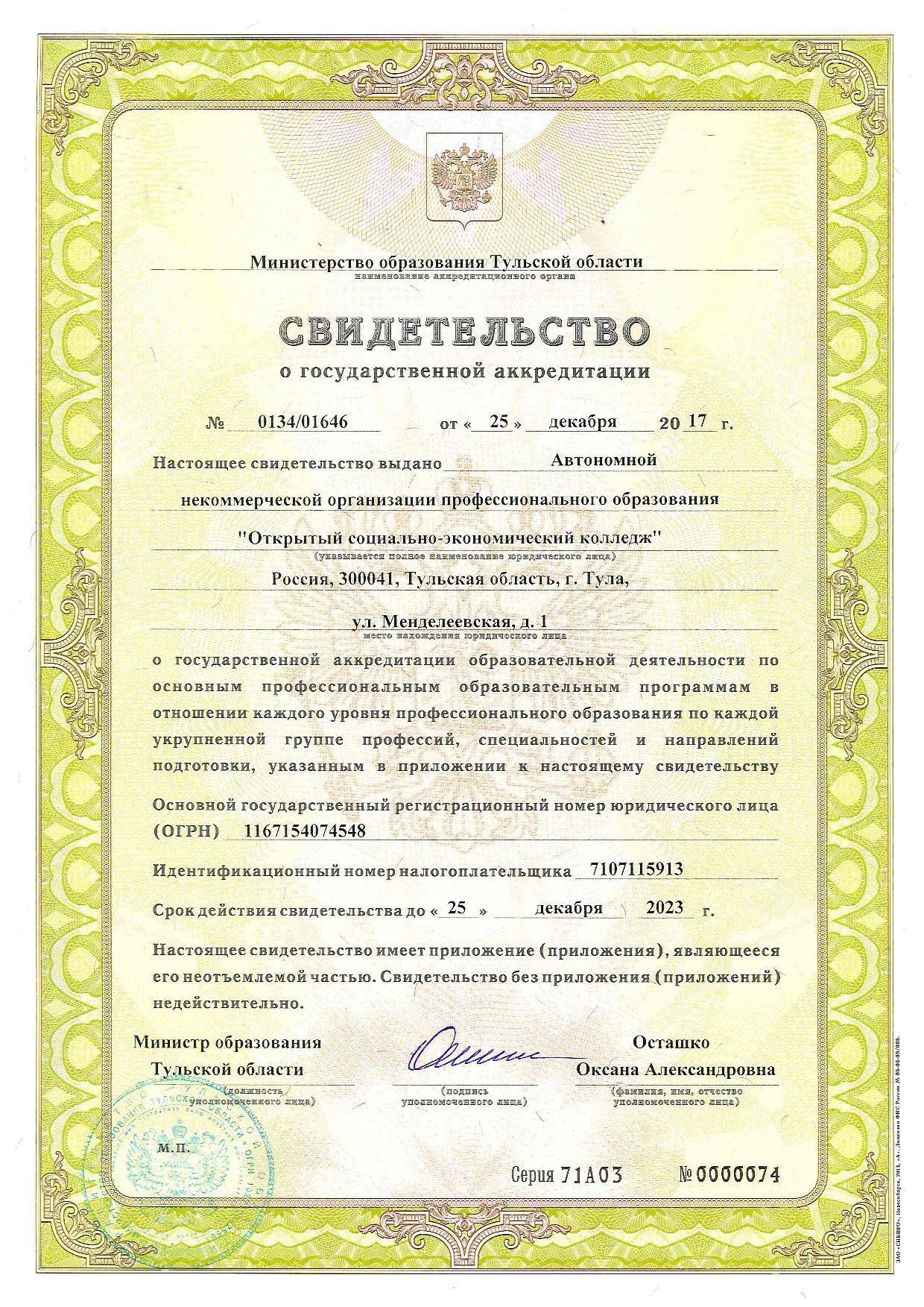 Документы: лицензия и государственная аккредитация.
